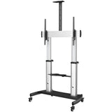Il supporto per TV Startech STNDMTV100 è un robusto carrello mobile da pavimento progettato per schermi di grande formato, compatibile con televisori da 60” a 100” (da 152,4 cm a 254 cm) e in grado di sostenere un peso massimo di 100 kg. Questo supporto universale offre una base ampia di 1,22 m per 71 cm che garantisce la stabilità necessaria per spostare in sicurezza schermi grandi in ambienti come aule, uffici o spazi educativi. L’altezza è completamente regolabile tra 1,2 m e 1,68 m dal pavimento al centro del televisore, permettendo di configurare lo schermo all’altezza ottimale per ogni visualizzazione, con indicatori che facilitano regolazioni precise e utili per impostazioni ripetibili in diverse postazioni. Inoltre, l’angolo di inclinazione del televisore può variare tra +5° e -10° per ottimizzare la visibilità e ridurre fastidiosi riflessi in base alle condizioni di illuminazione ambientale. Per completare la funzionalità, il supporto include due mensole indipendenti regolabili, ideali per dispositivi audiovisivi come webcam e altri apparecchi multimediali, con una capacità di carico fino a 5 kg ciascuna. La mensola superiore si alza fino a 2,37 m e quella inferiore fino a 90 cm, facilitando un’organizzazione pratica e accessibile delle apparecchiature aggiuntive. Realizzato con materiali resistenti, questo supporto si distingue per durabilità e robustezza, perfetto per uso frequente e spostamenti continui in ambienti professionali o educativi. Il design integra un sistema di gestione cavi che mantiene l’area ordinata e senza grovigli, offrendo una finitura pulita e funzionale. Il supporto è disponibile nei colori nero e argento, adattandosi esteticamente a diversi spazi e stili. La compatibilità con interfacce di montaggio da 200 x 200 mm a 1000 x 600 mm assicura versatilità per vari modelli di televisori. In sintesi, il Startech STNDMTV100 è una soluzione mobile, solida e regolabile che facilita la gestione e l’installazione di schermi grandi, pensata per ambienti professionali dove mobilità e stabilità dell’attrezzatura audiovisiva sono essenziali.